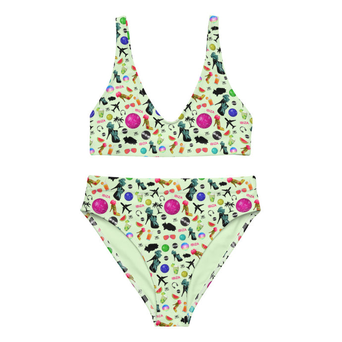 Recycled high-waisted bikini Green 'Ibiza disco'